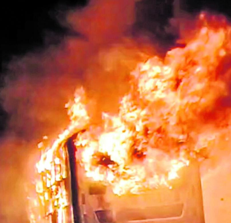 ಎ.ಸಿ ಬಸ್‌ ಬೆಂಕಿ ಹೊತ್ತಿ ಉರಿದು 20 ಮಂದಿ ಸಜೀವ ದಹನ